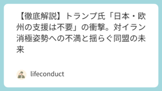 【徹底解説】トランプ氏「日本・欧州の支援は不要」の衝撃。対イラン消極姿勢への不満と揺らぐ同盟の未来 @import url(' body { font-family: 'Noto Sans JP', sans-serif; line-hei...