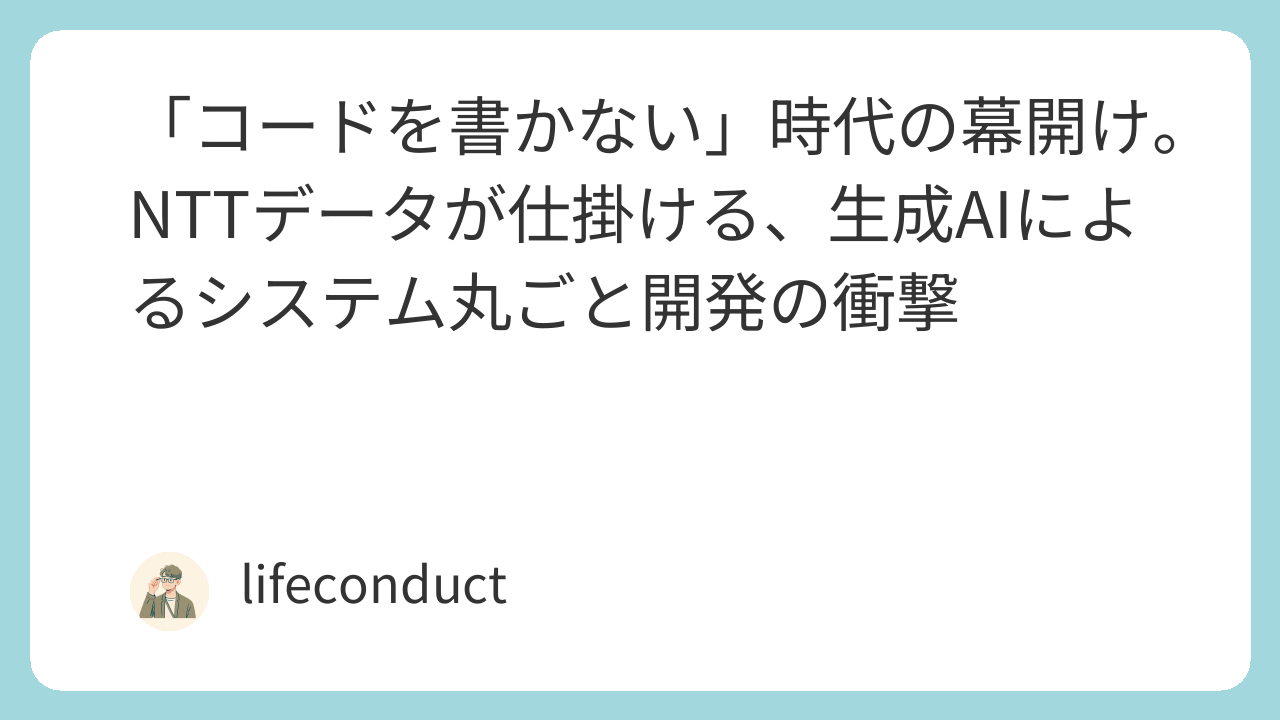 「コードを書かない」時代の幕開け。NTTデータが仕掛ける、生成AIによるシステム丸ごと開発の衝撃と未来予想図
