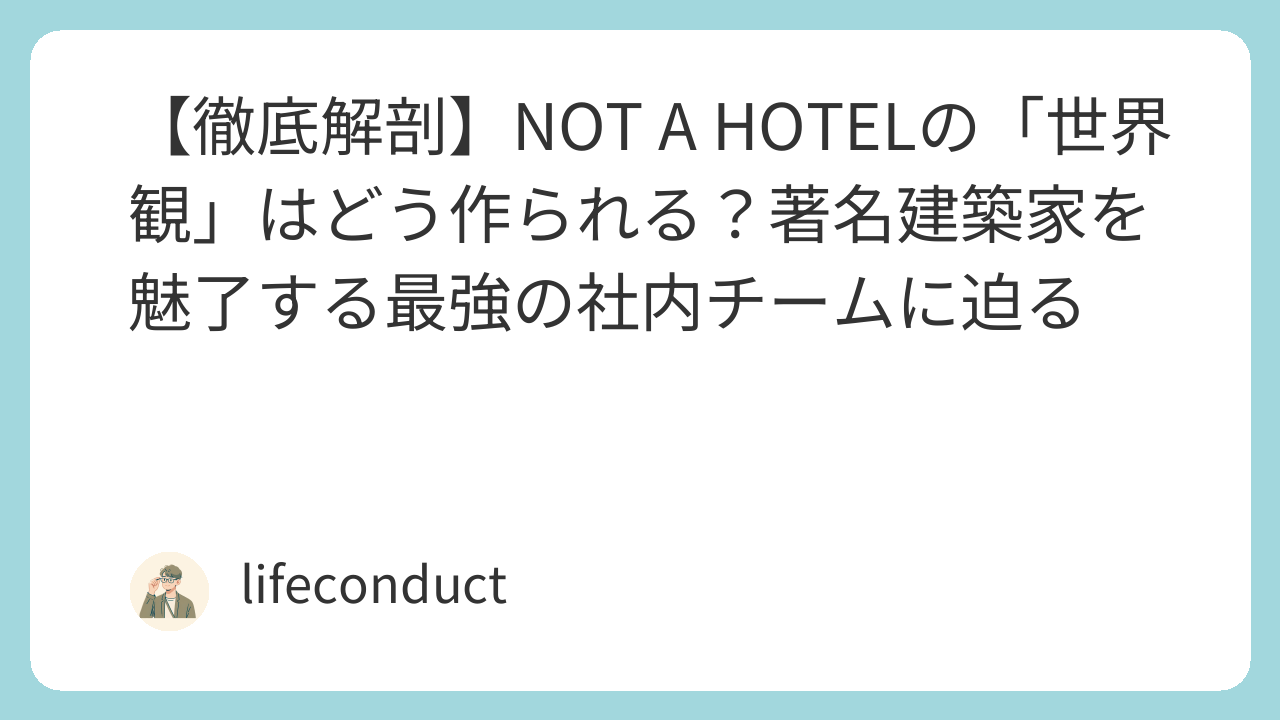 NOT A HOTELが証明しているのは、**「優れた世界観は、優れた組織構造から生まれる」**という真理です。