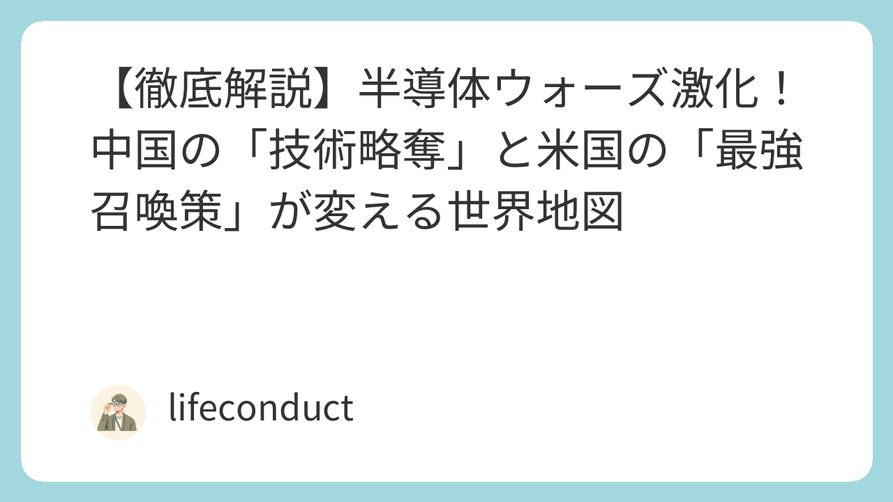 半導体を巡る争いは、もはやビジネスの枠を超えた「主権争い」です。中国による台湾・韓国の技術侵食(草刈り場化)と、それに対する米国の強硬な引き戻し(召喚策)。この巨大な力学の間で、日本の産業がどう立ち回るのか。