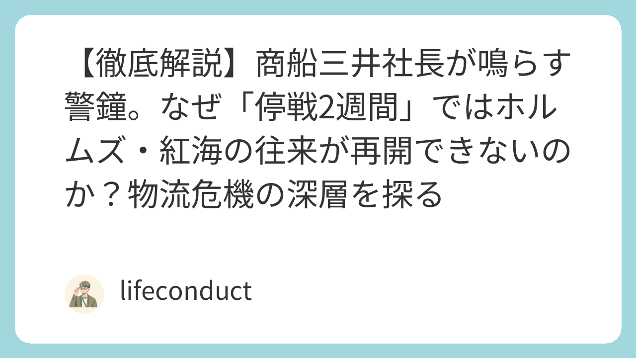 【徹底解説】商船三井社長が鳴らす警鐘。なぜ「停戦2週間」ではホルムズ・紅海の往来が再開できないのか?