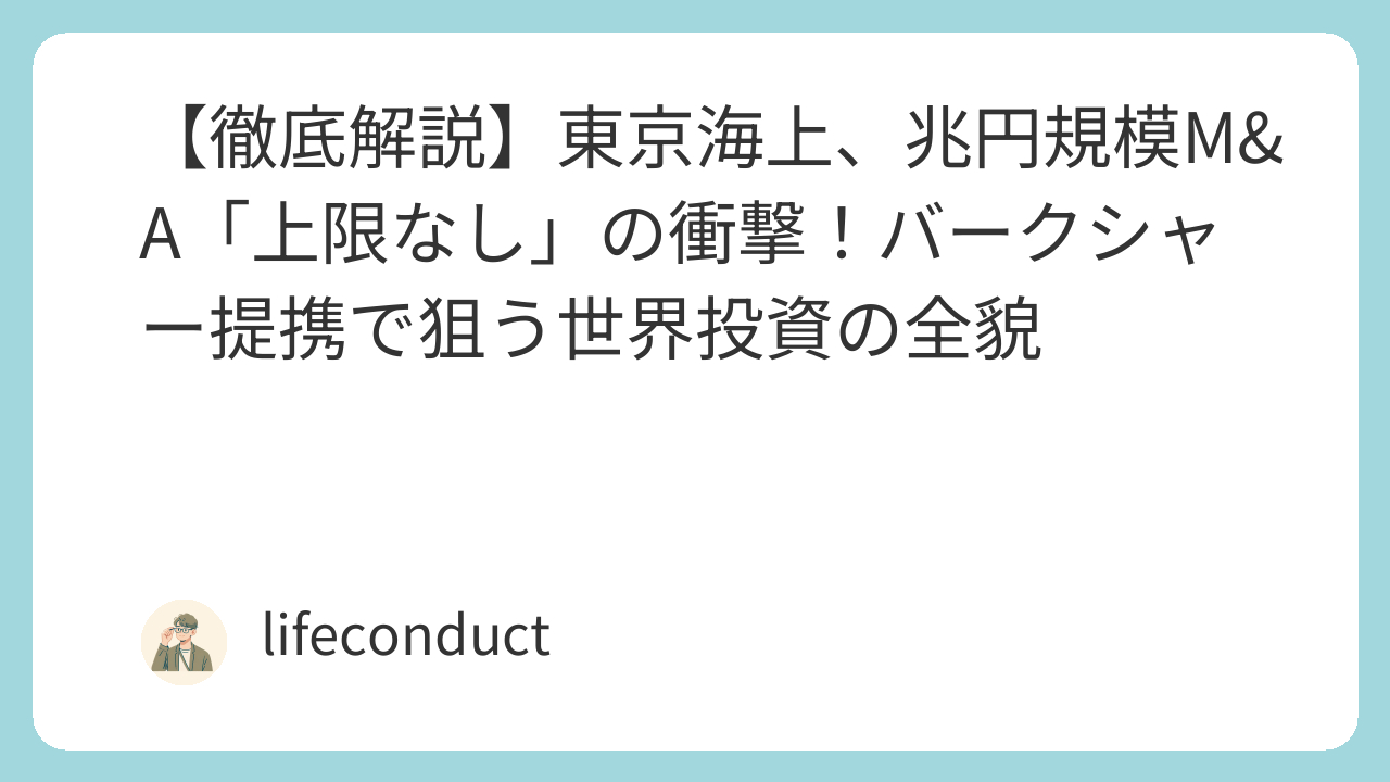 東京海上の「上限なしM&A」戦略は、単なるバブル的な膨張ではなく、徹底した資本管理と世界最高のパートナーを得たことによる**「計算された攻勢」**です。