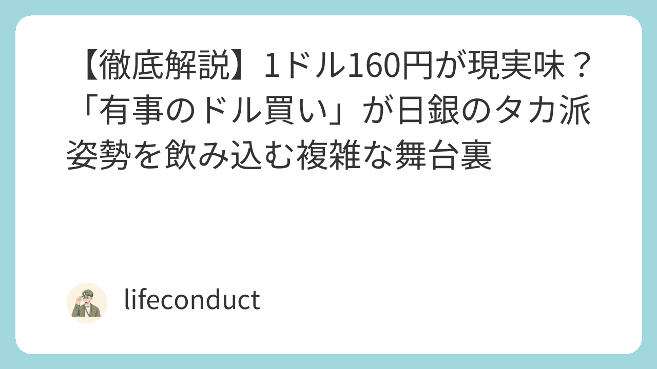 円安が止まりません。ついに「160円」という数字が現実的な視界に入ってきました。日銀が利上げを匂わせる「タカ派」な姿勢を見せても、なぜ円高に戻るどころか円安が加速してしまうのか?その背景にある「有事のドル買い」の正体に迫ります。
