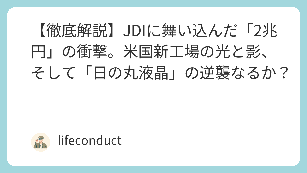【徹底解説】JDIに舞い込んだ「2兆円」の衝撃。米国新工場の光と影、そして「日の丸液晶」の逆襲なるか?
