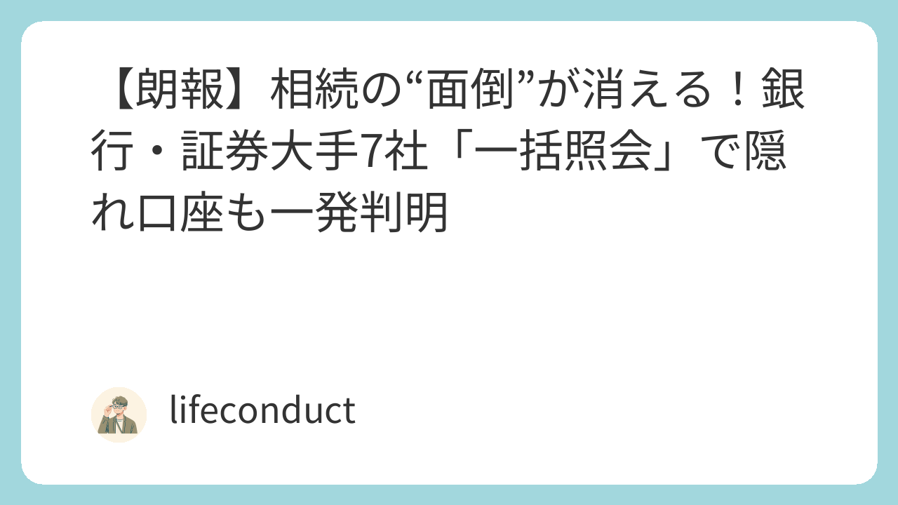 【朗報】相続の“面倒”が消える!銀行・証券大手7社「一括照会」で隠れ口座も一発判明
