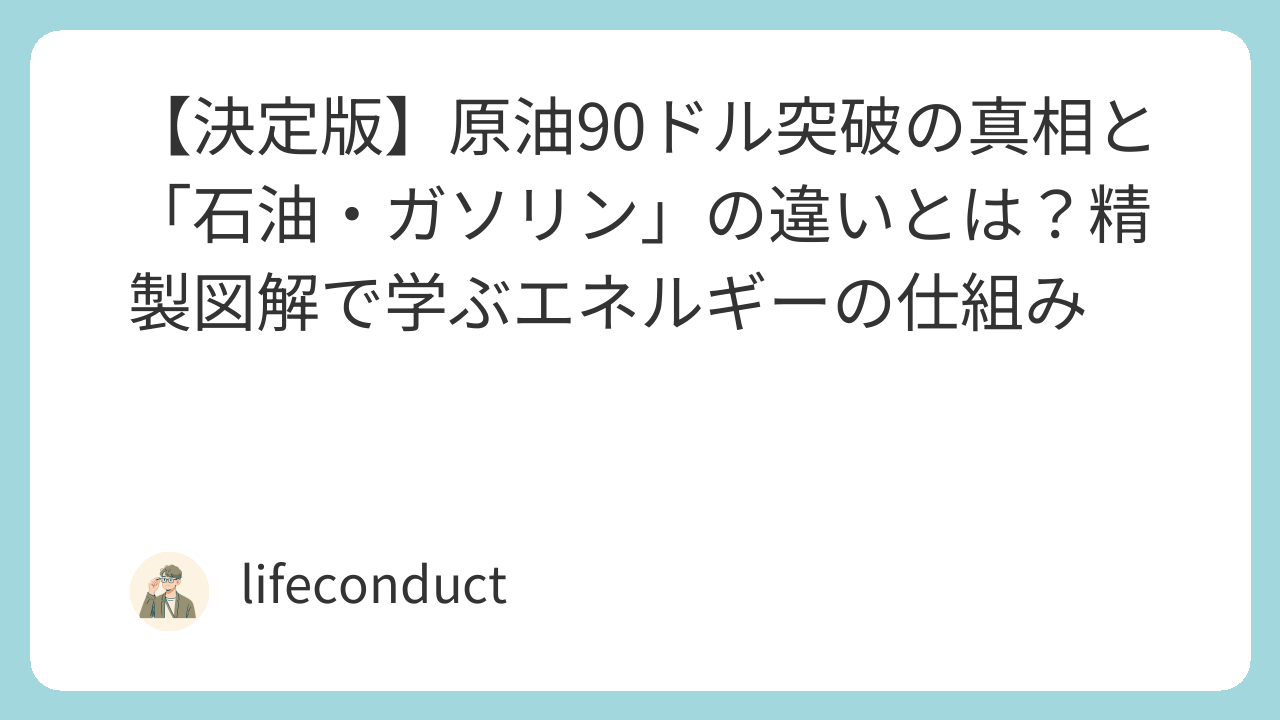 原油価格が90ドルを突破した今、私たちが払うガソリン代や電気代にどう影響するのか。そのメカニズムを知るには、まず「言葉の定義」と「精製の仕組み」を知るのが一番の近道です。今回は、最強の図解とともに、エネルギー情勢の裏側を深掘りしていきましょう。