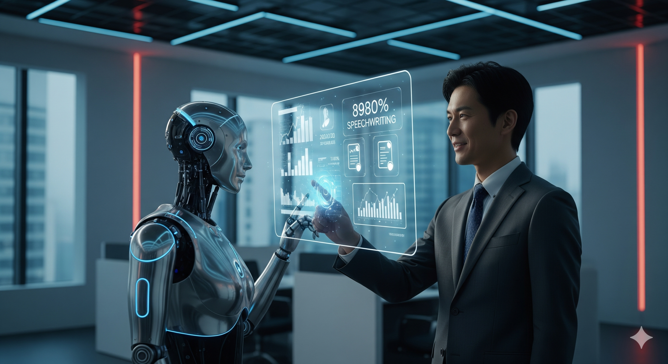 多くの人が驚いたのは、AIが「スピーチ執筆」を担当するという点でしょう。