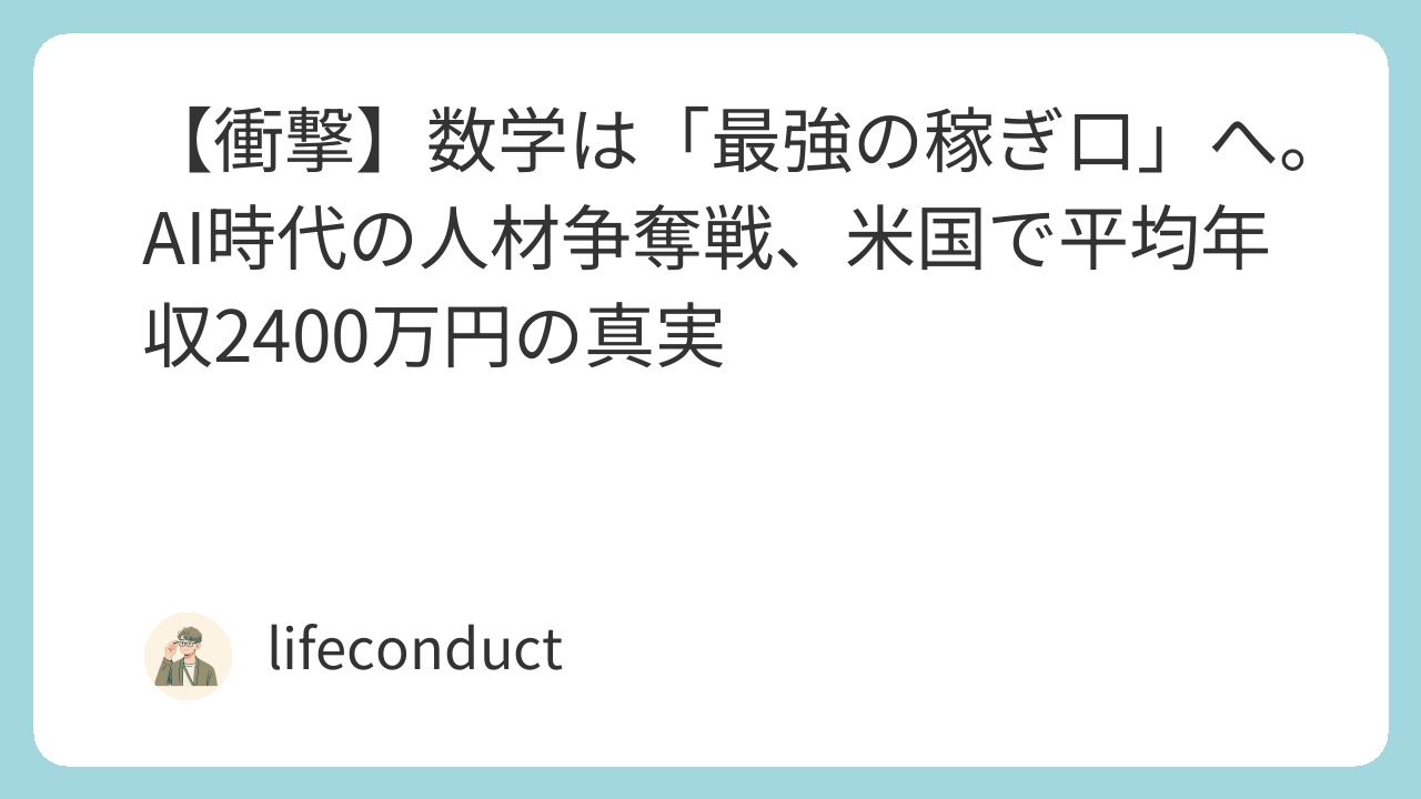 【衝撃】数学は「最強の稼ぎ口」へ。AI時代の人材争奪戦、米国で平均年収2400万円の真実