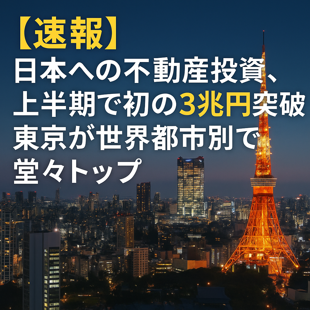 2025年上半期(1月〜6月)、日本への不動産投資額が初めて3兆円を突破し、都市別では東京が世界トップとなりました。本記事では、