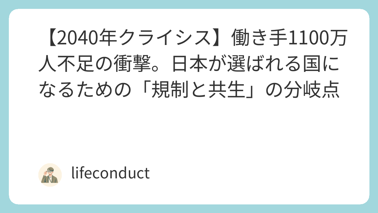 【2040年クライシス】働き手1100万人不足の衝撃。日本が選ばれる国になるための「規制と共生」の分岐点