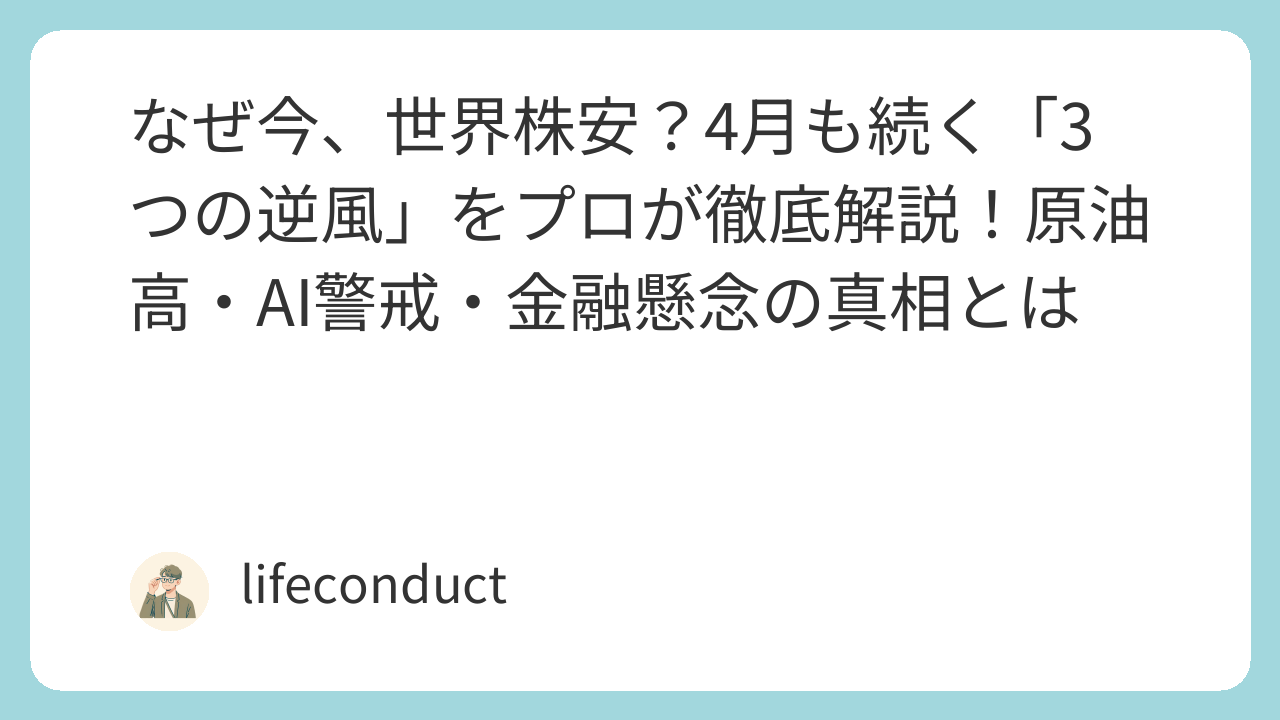日経平均株価や米国のS&P500が史上最高値を更新していた熱狂から一転、なぜ市場は急ブレーキを踏んだのか。その裏には、「原油高」「AIバブルへの警戒」「金融・金利の不透明感」という3つのモンスターが潜んでいます。4月も続くこの「下げ圧力」の正体を、まずは最強の図解で整理してみましょう。