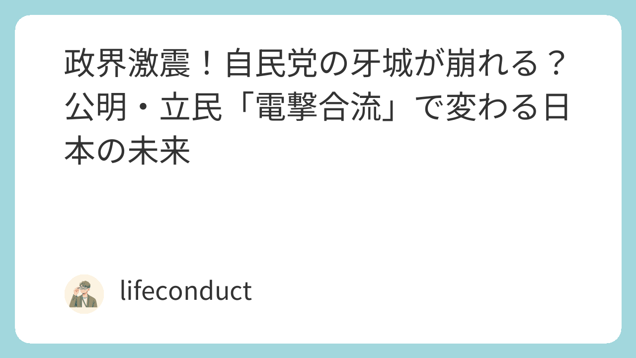 永田町に激震が走りました。長年、自民党と連立を組んできた「公明党」と、野党第一党として対峙してきた「立憲民主党」が、まさかの新党結成。この歴史的な合流により、長年続いてきた「自公体制」が崩壊の危機に直面しています。