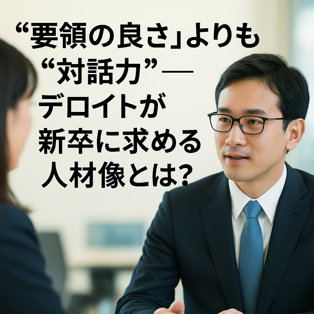 そんな印象を抱く方も多いかもしれません。実際に、コンサルティングファーム最大手の一角、Deloitte Tohmatsu Consulting(以下:デロイト)が、新卒採用において“要領の良さ”ではなく“対話力(コミュニケーション能力)”をより重視する傾向が強まっているという報道・データがあります。本記事では、ニュースを詳しく知りたい方を対象に、「なぜ対話力が今、より重要になっているのか」「デロイトの採用プロセスではどう対話力を見極めているのか」「あなたが学生・就活生としてどう備えればいいのか」を整理してお伝えします。