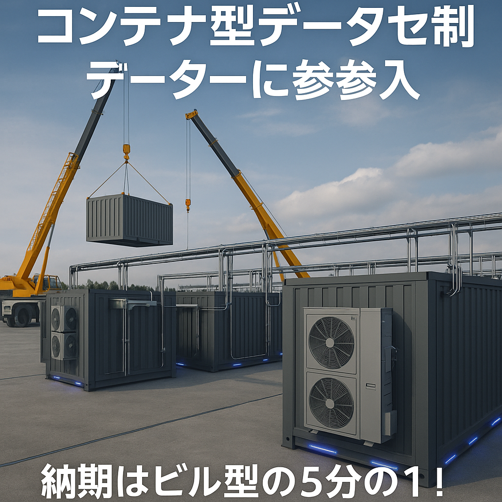 例えば、NTTファシリティーズの紹介資料では、コンテナ型データセンターは「構成要素の最適化・標準化により、大幅な工期短縮を実現」と明言しています。 [oai_citation:0‡ntt-f.co.jp](https://www.ntt-f.co.jp/service/data_center/data_conta/?utm_source=chatgpt.com)